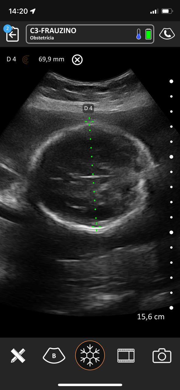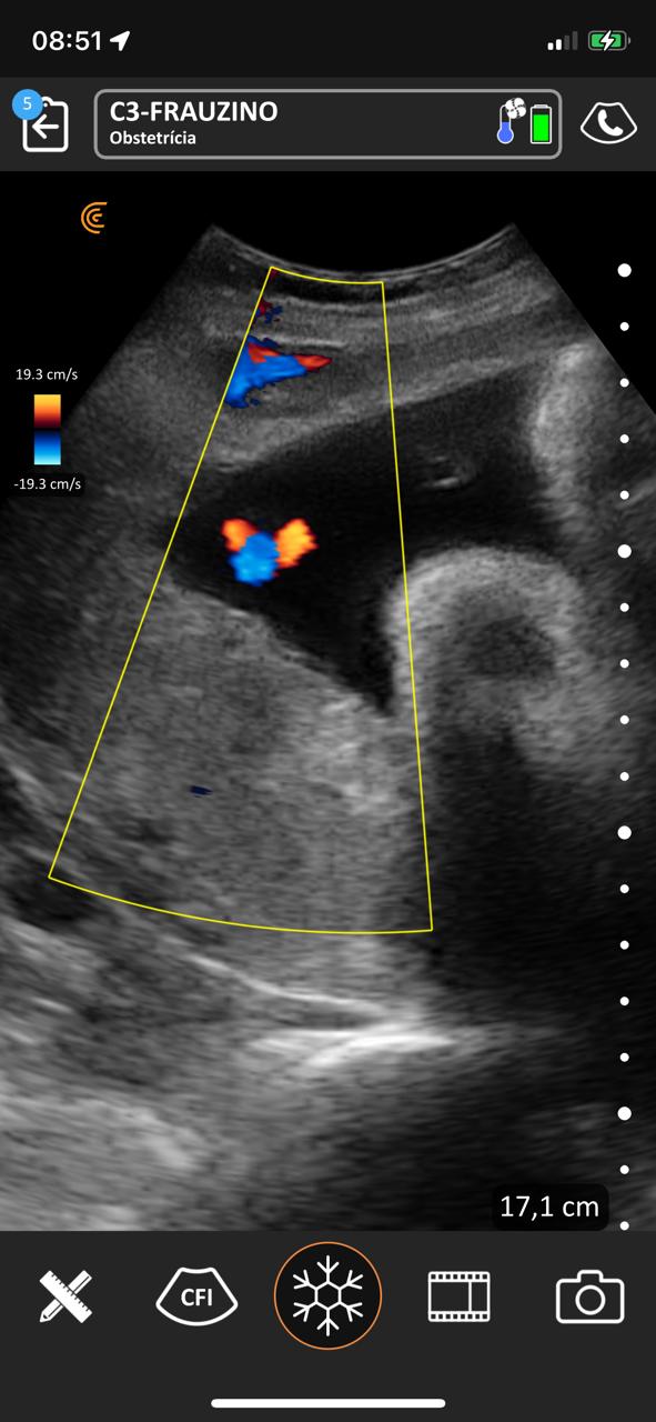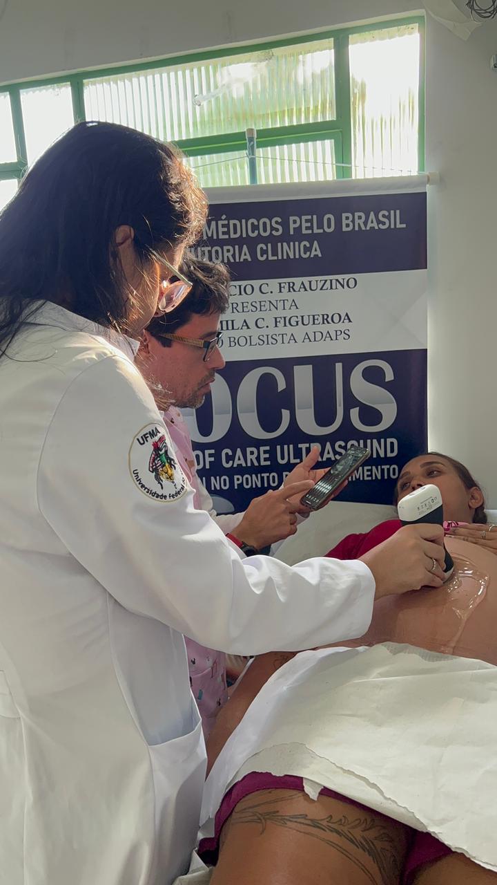 No período compreendido entre 07/03/2023 a 07/03/2025 na Estratégia de Saúde da Família São Francisco ESF-03 e Sol Nascente ESF-07 no município de Porangatu (GO), Brasil realizou-se um total de 8.349 atendimentos médicos, com 769 consultas de pré-natal e 411 ultrassons no local de atendimento de acompanhamento do pré-natal de risco habitual com aparelho portátil de bolso, sem fio, tecnologia Clarius C3 HD3, transdutor convexo, frequência de 2-6 MHz e monitores iPhone-10 e iPad Air 11. Acompanharam alguns atendimentos 12 bolsistas do PMpB dos municípios goianos Bonópolis, Britânia, Campinorte, Mara Rosa, Mundo Novo, Mutunópolis, Niquelândia, Nova Veneza, Santa Tereza de Goiás, São Miguel do Araguaia e do Pará Santana do Araguaia. Os bolsistas não tinham conhecimentos prévios sobre a PoCUS, disseram que sua formação nessa ferramenta durante o PMpB foi satisfatória e caso tivessem um aparelho sentem confiança em realizar o procedimento tanto na Unidade Básica de Saúde quanto nos domicílios, acreditaram que a formação básica recebida foi alcançada e concordam totalmente que a ultrassonografia no local de atendimento poderia estar dentro da formação especializada em medicina de família e comunidade e entenderam que no pré-natal de risco habitual é uma ferramenta que pode mudar sua conduta.