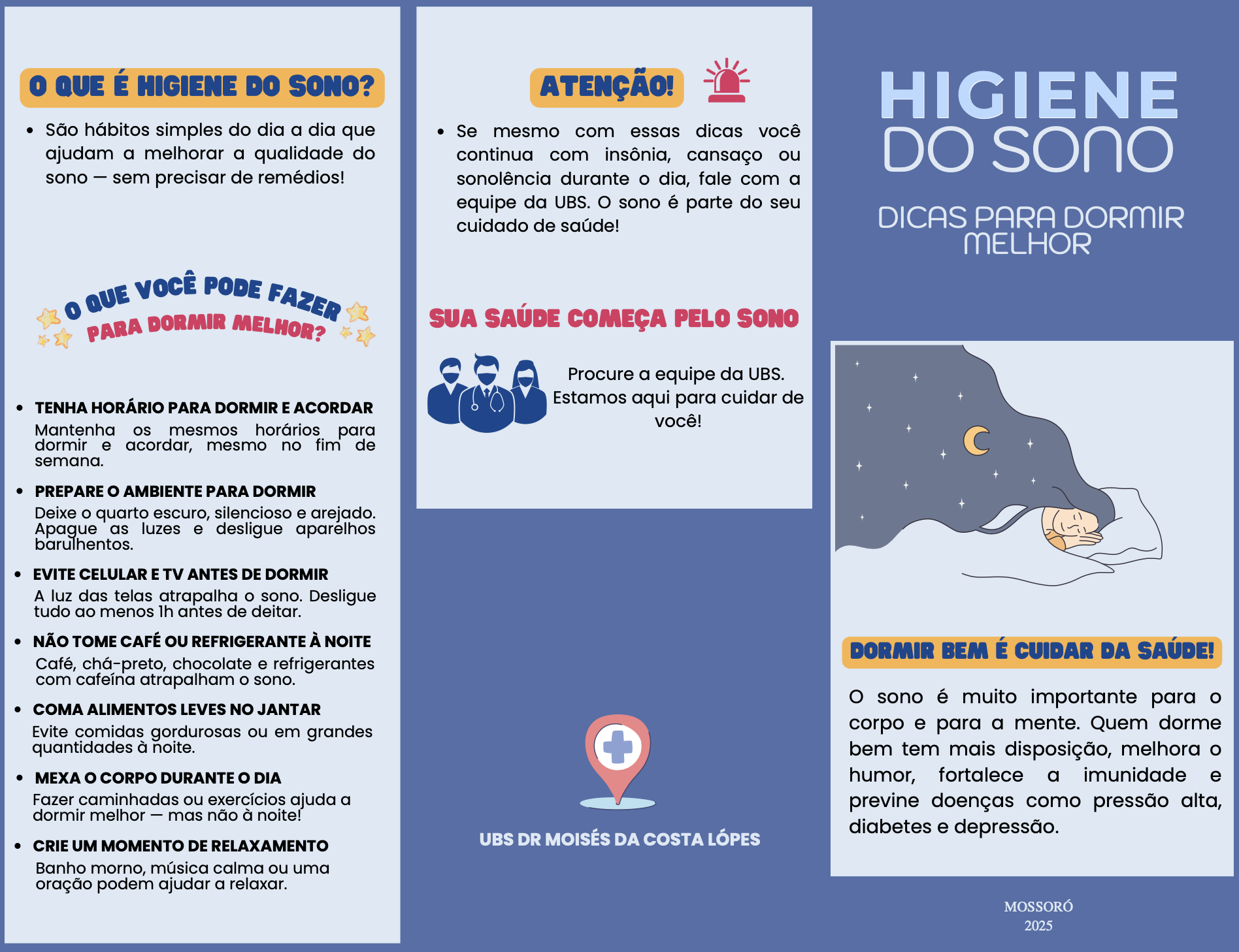 A insônia é um distúrbio frequente entre os pacientes atendidos pela UBS Dr. Moisés da Costa Lopes. Diante da alta prevalência do uso crônico de psicofármacos, especialmente benzodiazepínicos, a equipe de saúde, em parceria com quatro internos de Medicina, desenvolveu uma intervenção baseada na investigação do perfil dos usuários e na implementação de estratégias educativas e terapêuticas seguras.